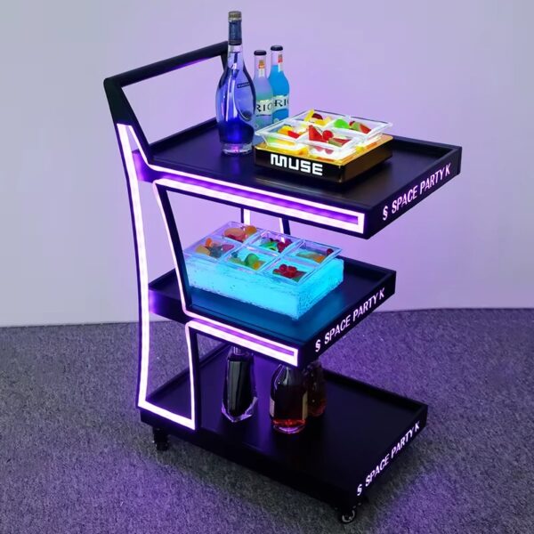 عربة تقديم LED فاخرة ومتعددة الأدوار بتصميم عصري يجمع بين الأناقة والعملية.