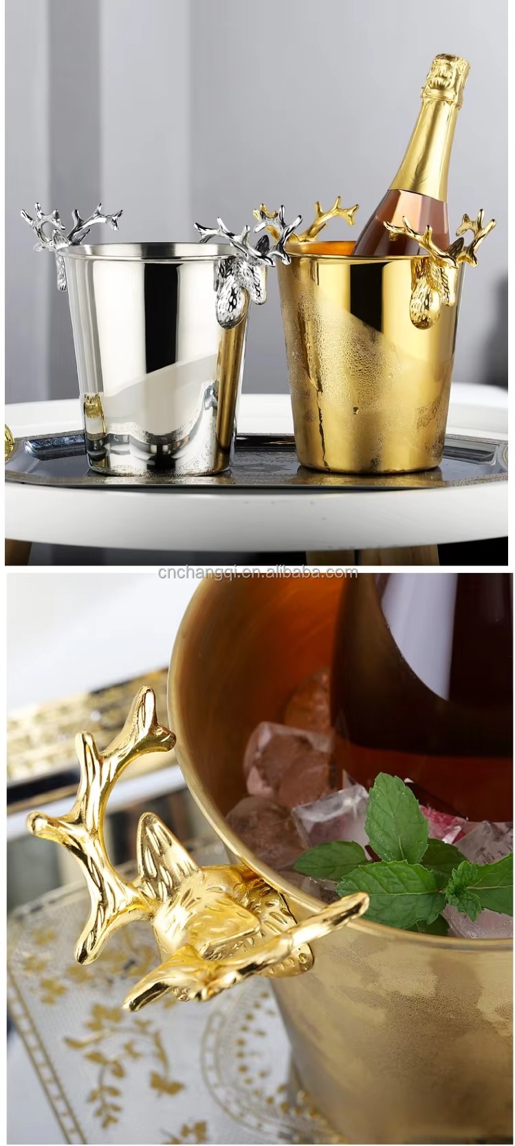Drink Display بتصميم أنيق وفاخر (ذهبي/فضي) مثالي لـ عرض المشروبات المثلجة بأسلوب VIP.
