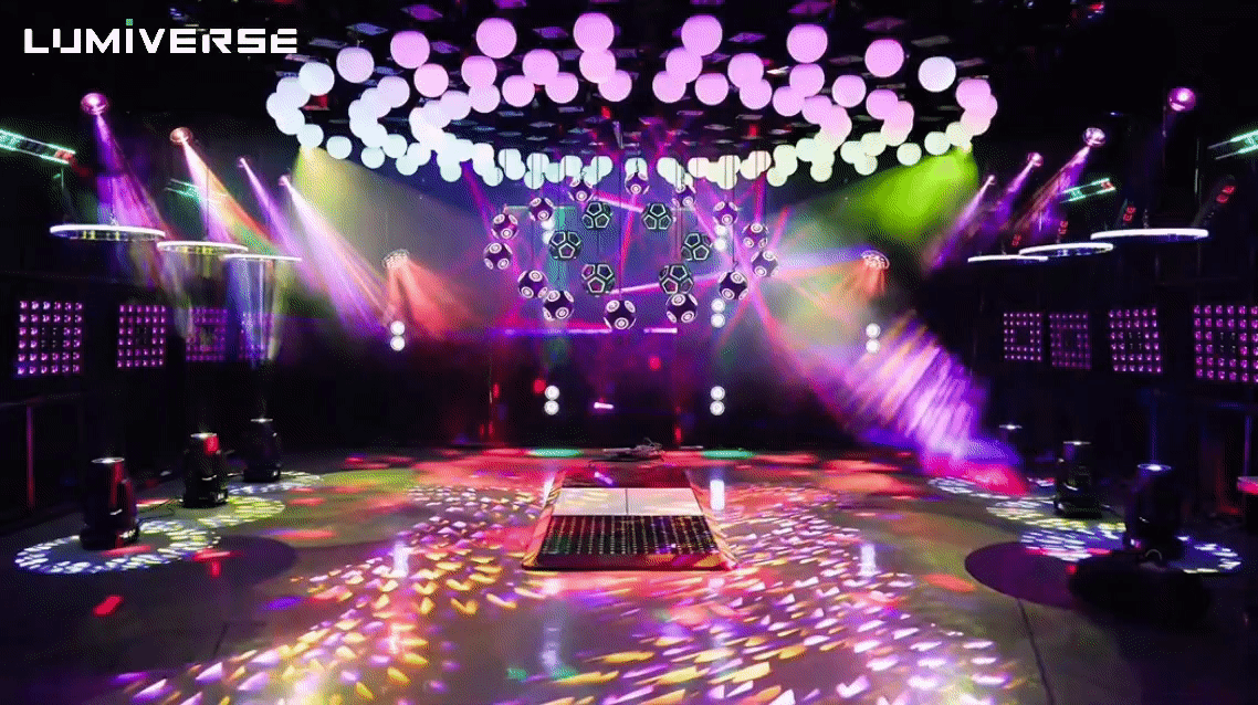 مصدر الإضاءة 8 ليزر RGB بقوة 500 ميلي واط + 144 لمبة LED RGB.
