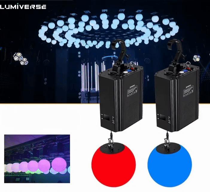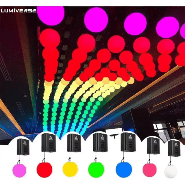 نظام إضاءة احترافي متكامل يعمل بمحرك سيرفو للتحكم بحركة كرات الإضاءة صعودًا ونزولًا مع مؤثرات ضوئية متزامنة عبر DMX و Art-Net. يدعم الربط مع MADRIX وكونسولات الإضاءة