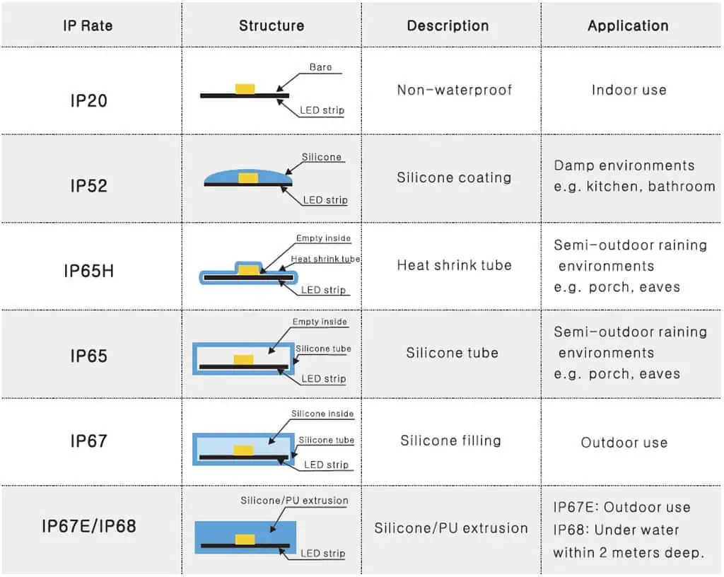 If some LED strips need to be used outdoors or underwater, they also need to be waterproof and dustproof.