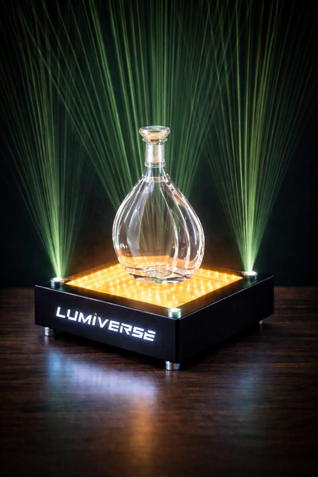 Transform any table into a luxury visual show! This laser-illuminated holder highlights the bottle with powerful LED lighting and elegant laser lines, delivering a professional VIP feel.