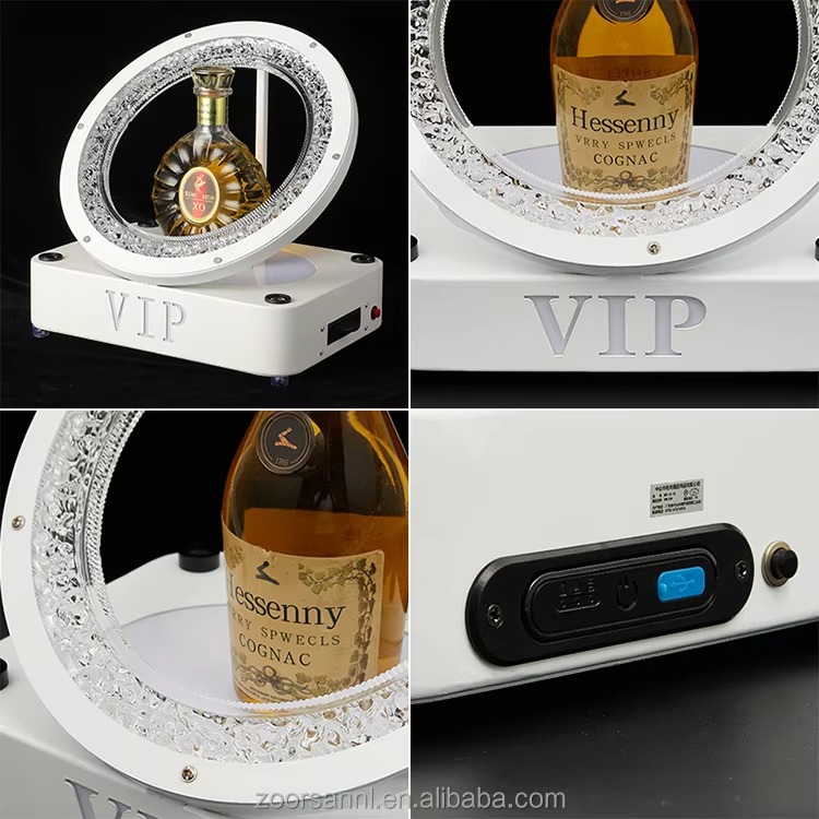 A VIP drink display base featuring color-changing LED lights and a laser effect