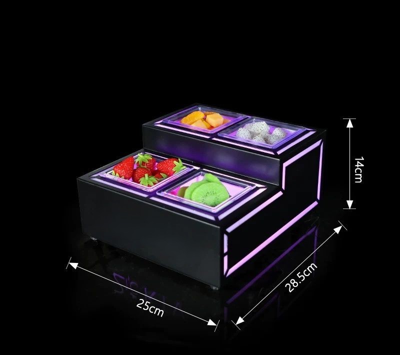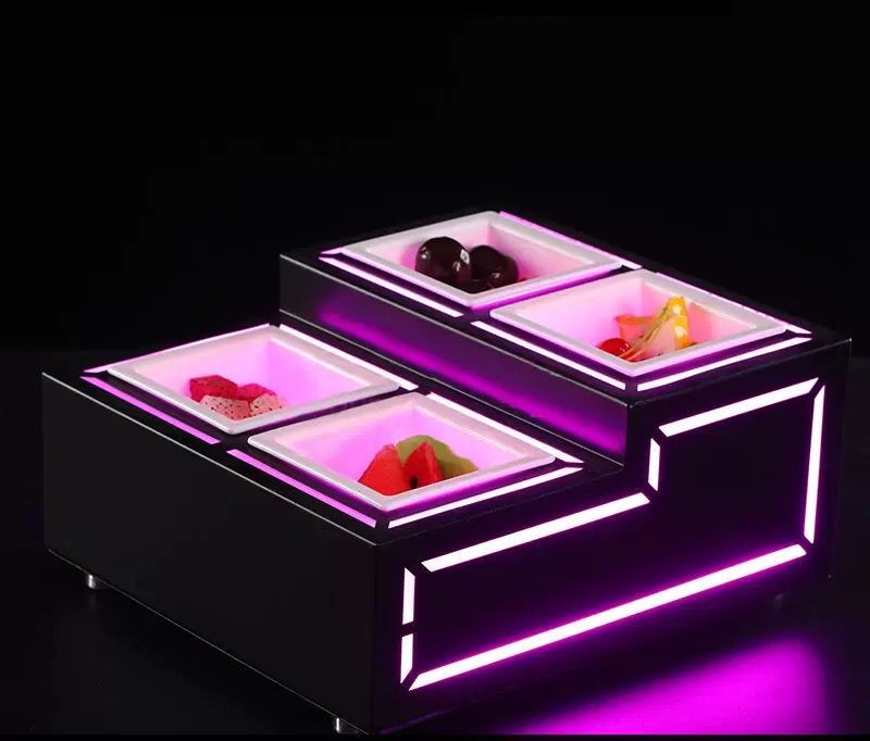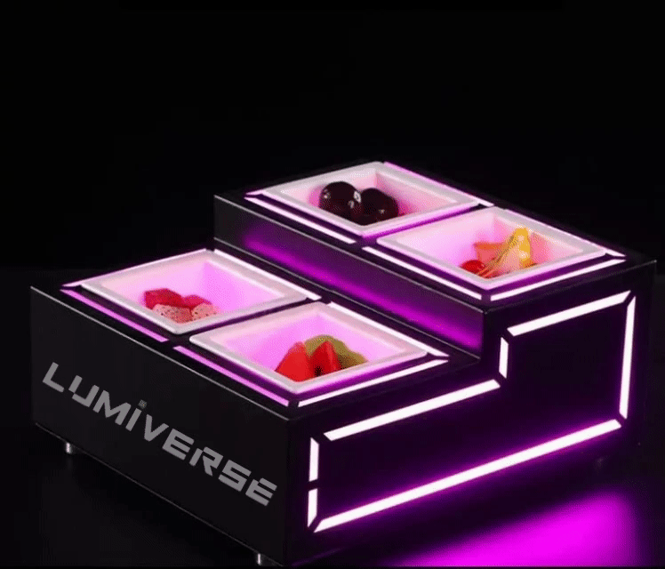 A stylish, modern multi-level LED serving base with vibrant color-changing illumination, adding a luxurious touch to any display table.