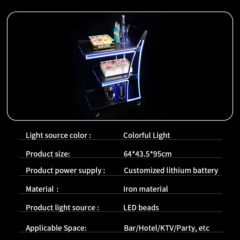 Featuring vibrant color-changing LED lighting that gives drinks and hospitality service a stunning presence, along with smooth-rolling wheels for effortless mobility in any space.