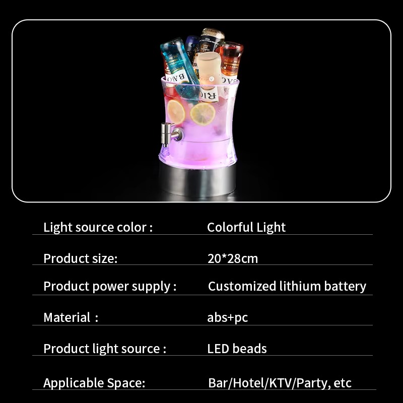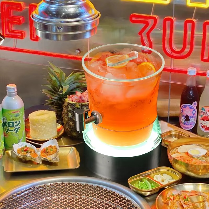 A modern and elegant LED drink dispenser featuring vibrant color-changing lighting that adds a professional and eye-catching touch to serving juices and cold beverages.