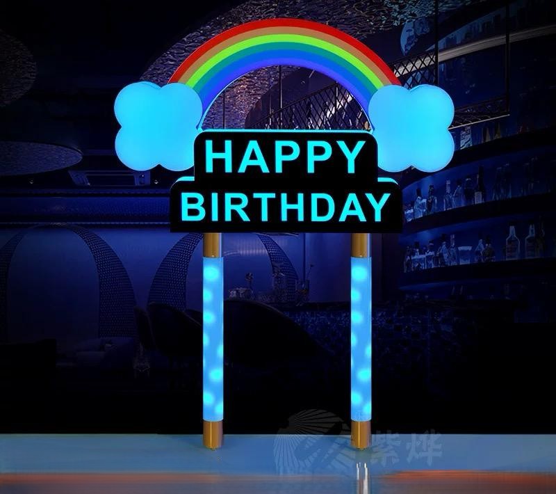 A celebratory LED drink holder with an eye-catching rainbow design featuring the “HAPPY BIRTHDAY” logo and vibrant color-changing lighting that creates a joyful, dazzling atmosphere for any occasion.