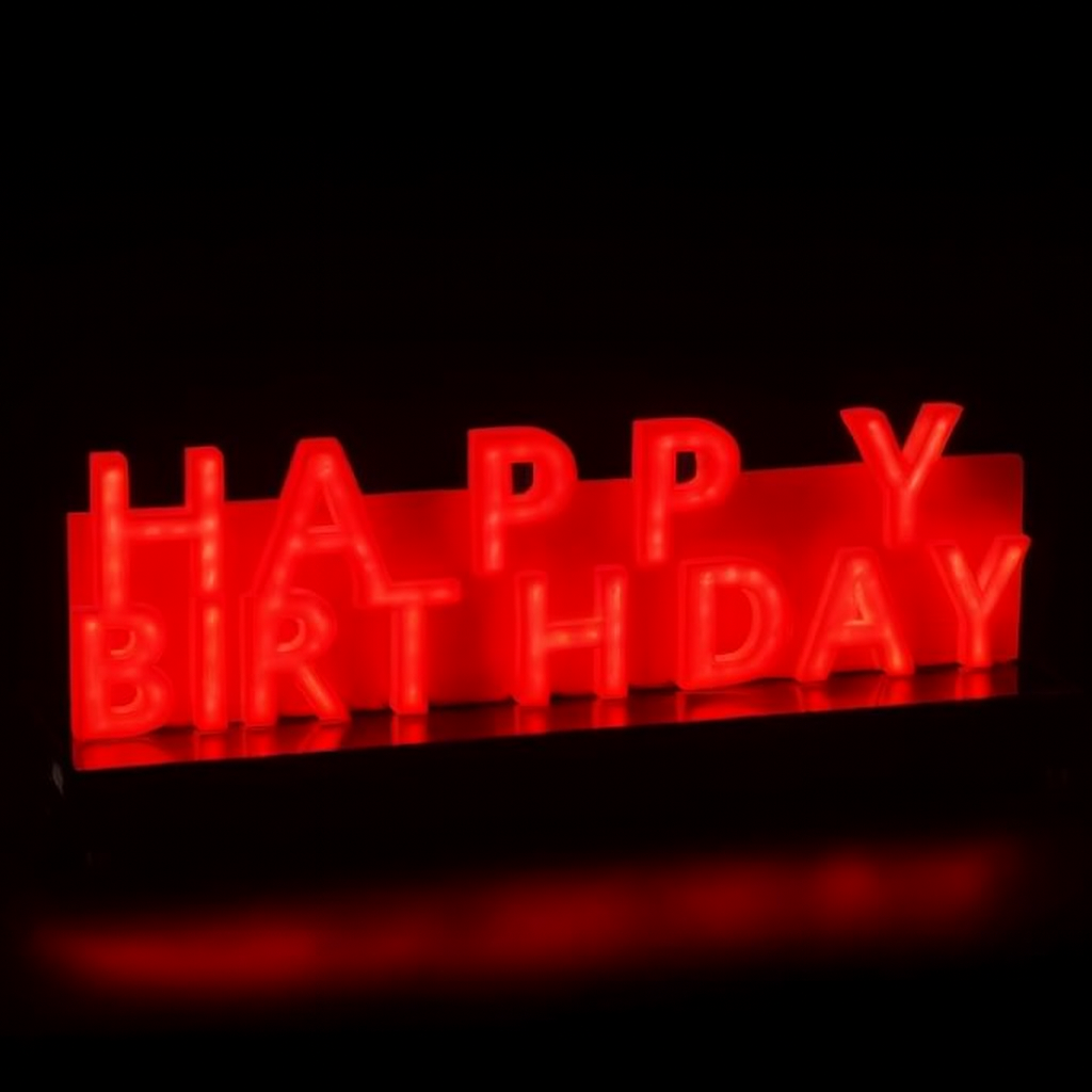 A modern color-changing LED sign featuring the phrase “HAPPY BIRTHDAY”, adding a premium festive touch and transforming any space into a dazzling celebration atmosphere.